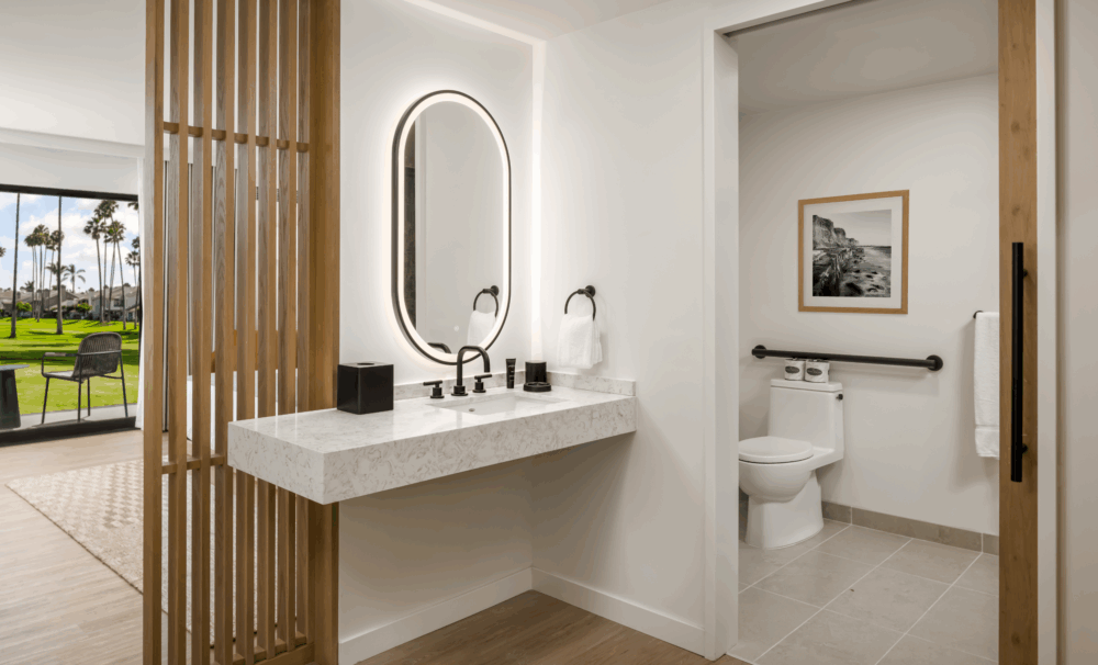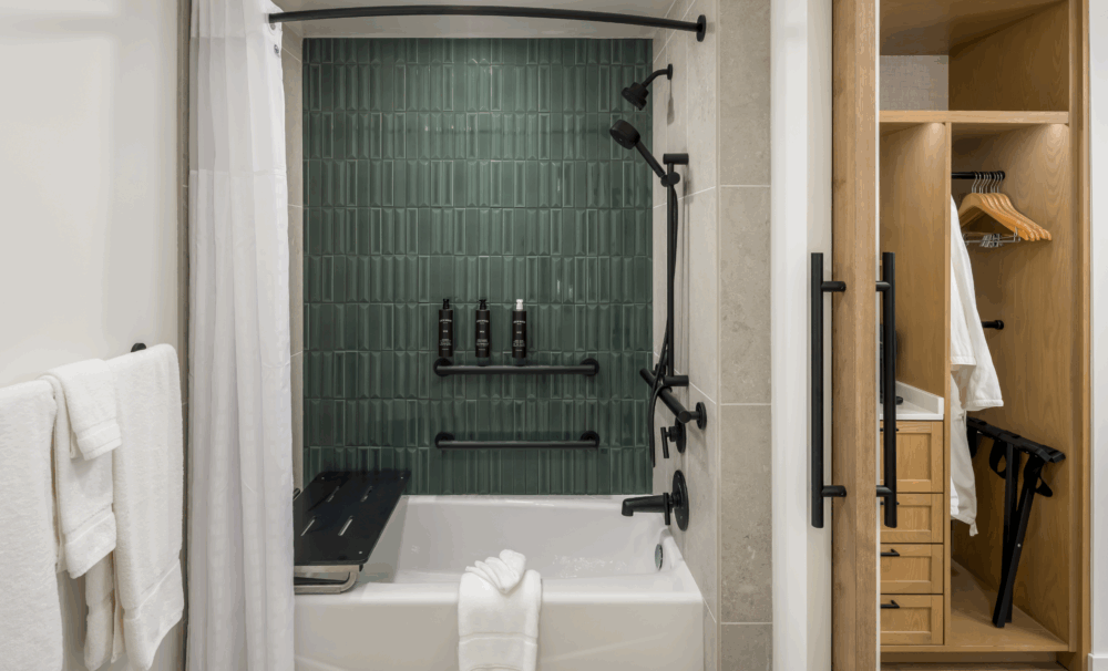 Guesthouse offers thoughtfully designed accessible rooms to ensure a comfortable stay for all guests. Our Accessible Club King and Accessible Club Double Queen rooms feature:
