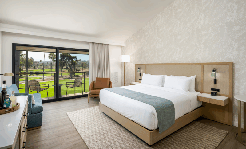 Our Club King Fireplace guest room features a king bed, accent chair, gas-burning fireplace and refrigerator. With a sliding door and balcony/patio (based on floor), this room affords the opportunity to take in the gorgeous climate all year.